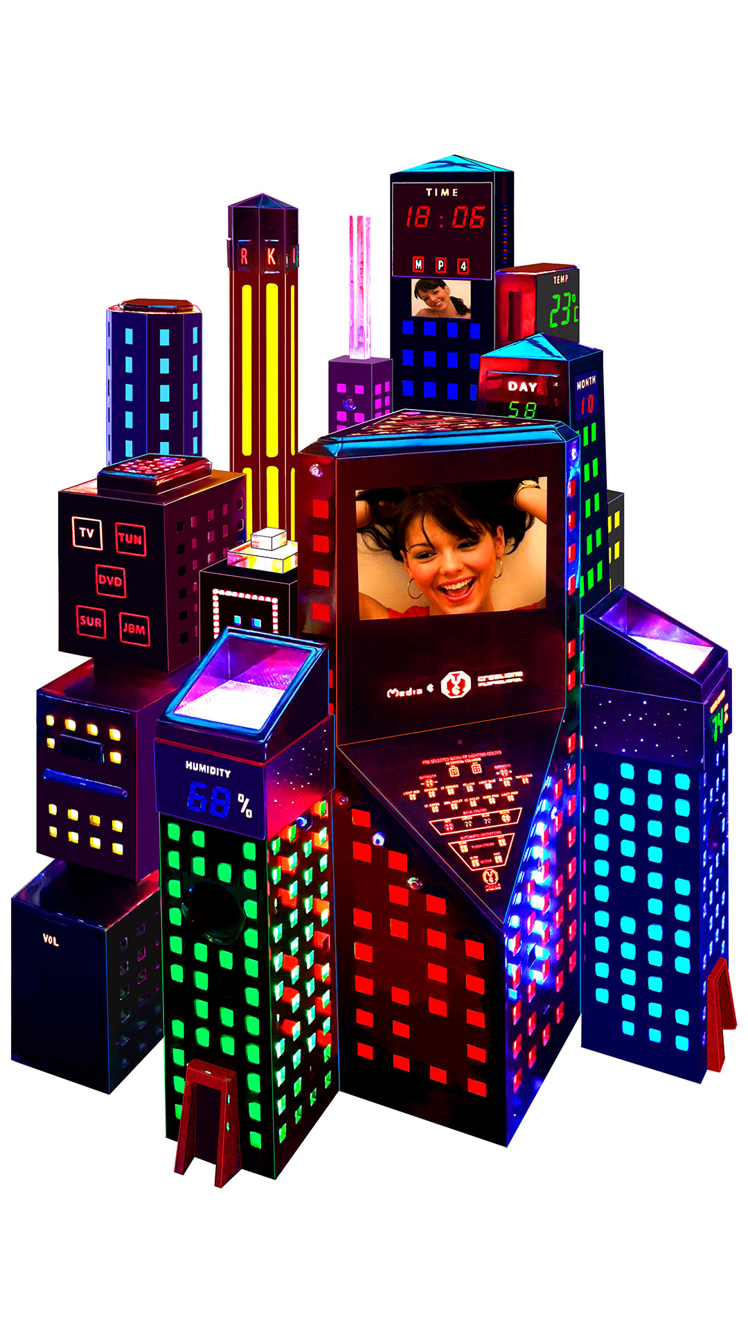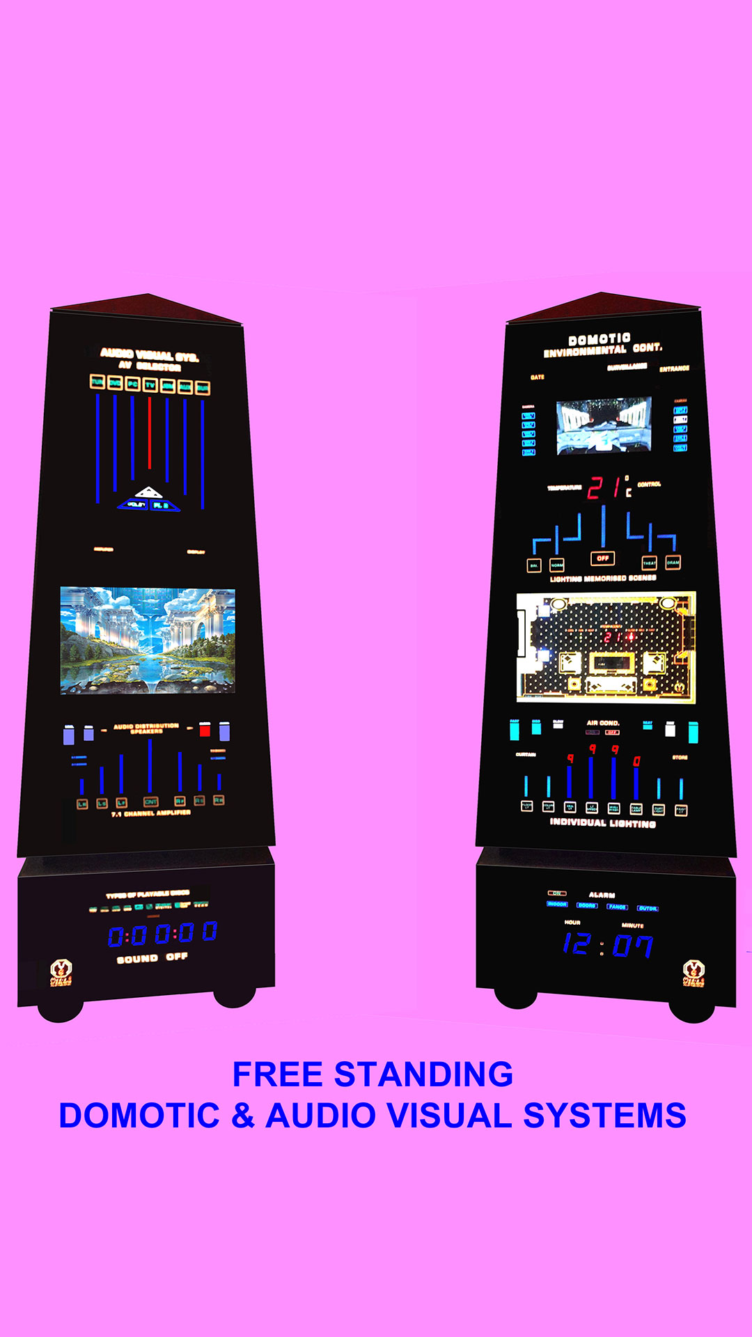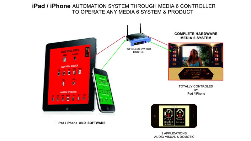 These highly sophisticated products are custom-made electronic systems with a new and exciting approach. Each system can incorporate one or all of the 6 domains of electronic media into one central unit, which constitute the heart of modern living: